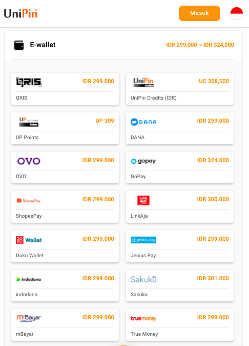 Jika ingin membeli dan membayar pakai e-wallet (OVO, GoPay, dan lainnya) juga bisa. Kamu tinggal memilih metode pembayaran e-wallet di UniPin. Selanjutnya tinggal membayar pakai e-wallet yang kamu pilih.