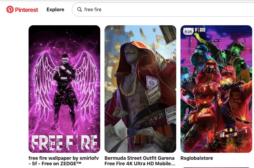 - Nantinya Pinterest akan menampilkan banyak gambar FF yang bisa kamu akses.