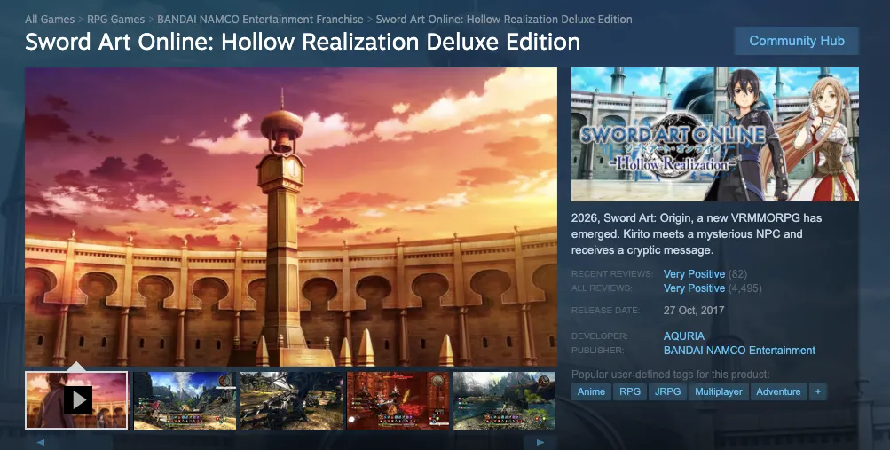 Yang ketiga ada game Sword Art Online: Hollow Realization. Game ini dirilis pada tahun 2017. Tersedia untuk platform: PlayStation Vita, PlayStation 4, Windows. Publisher gamenya adalah Bandai Namco Entertainment. Gameplay game ini memusatkan aktivitas utama di sebuah kota yang menjadi penghubung semua akses wilayah.