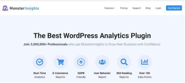 Monster Insights adalah Plugin analytics terbaik untuk situs WordPress. Plugin Ini memungkinkan untuk menginstal Google Analytics dengan mudah di WordPress dan menunjukkan laporan mengenai insight yang bermanfaat di dashboard WordPress. Monster Insight memiliki beberapa fitur antara lain: