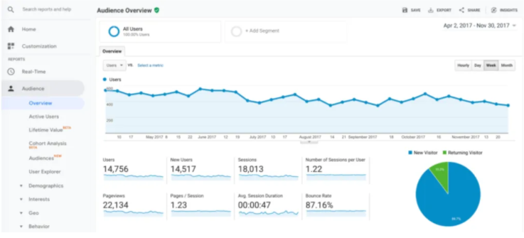 Dengan menggunakan plugin ini pemilik website dapat melakukan A/B Testing, melacak pengguna, banyak lagi. Google Analytics memiliki beberapa fitur antara lain: