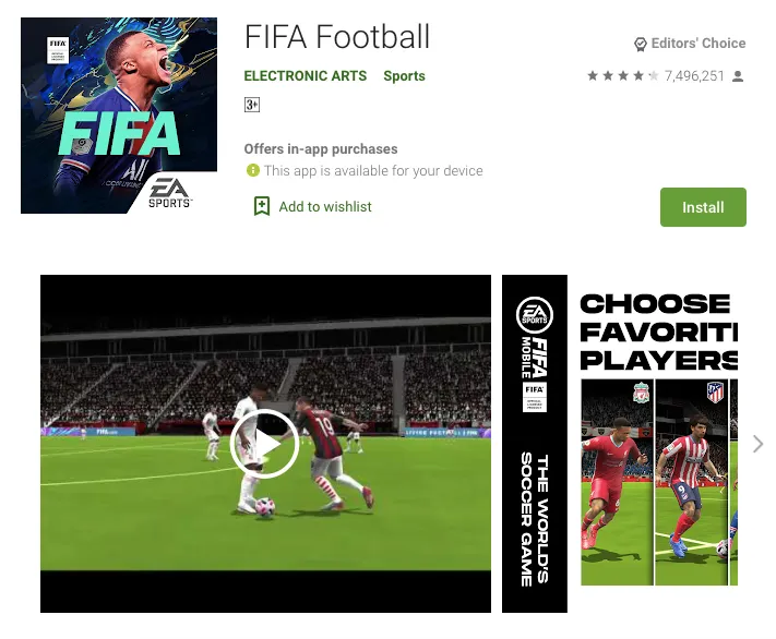 FIFA Mobile Soccer, game ini merupakan game dari EA Games. FIFA Mobile Soccer dirilis dalam versi Android pada pertengahan tahun 2016.