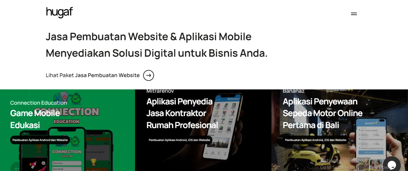 HUGAF adalah perusahaan teknologi yang menawarkan layanan pengembangan perangkat lunak, khususnya di bidang aplikasi mobile dan web. Mereka memiliki tim yang terampil dalam mengembangkan solusi yang disesuaikan dengan kebutuhan spesifik klien mereka.