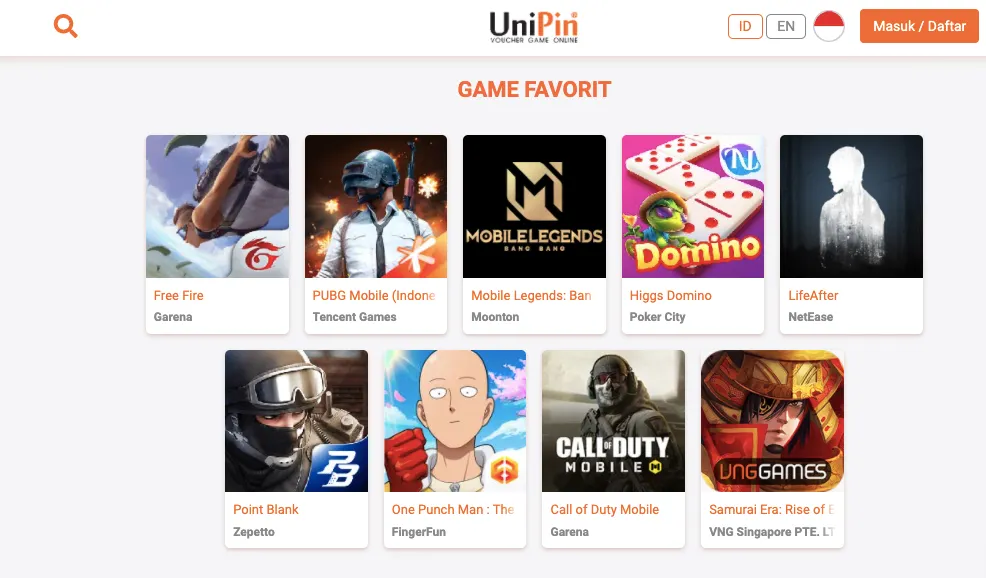 - dan top up berbagai game lainnya yang ada di website UniPin.