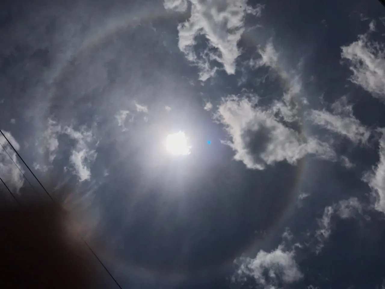 Meskipun di langit ada awan, tipisnya awan tersebut menyebabkan matahari dan bulan tetap terlihat jelas. Kandungan kristal es dalam awan membelokkan cahaya dari radiasi matahari yang melewatinya, menyebabkan lingkaran cahaya seperti cincin.