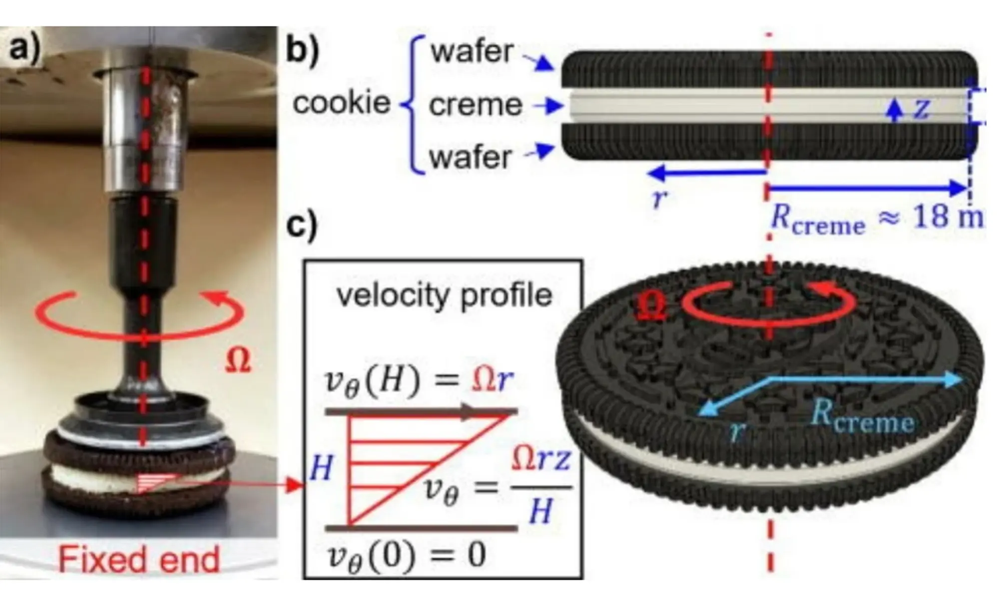 Owens kemudian memimpin eksperimen dengan uji rheology -studi mengenai aliran materi, terutama ketika dalam kondisi cair, namun juga benda padat dan semi padat- untuk membuktikan apakah benar krim Oreo selalu menempel di satu sisi. Mereka menciptakan alat bernama ‘Oreometer’, yang khusus dibuat untuk memisahkan wafer Oreo dengan sudut dan berat terukur.