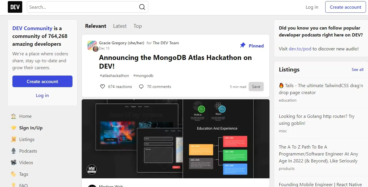 DEV Community memungkinkan kamu untuk menonton video komunitas, mendengarkan podcast, dan membeli merchandise. Yang terbaik dari semuanya, hal ini secara teratur menjadi tantangan, sehingga kamu dapat mengambil andil di dalamnya dan memenangkan hadiah.