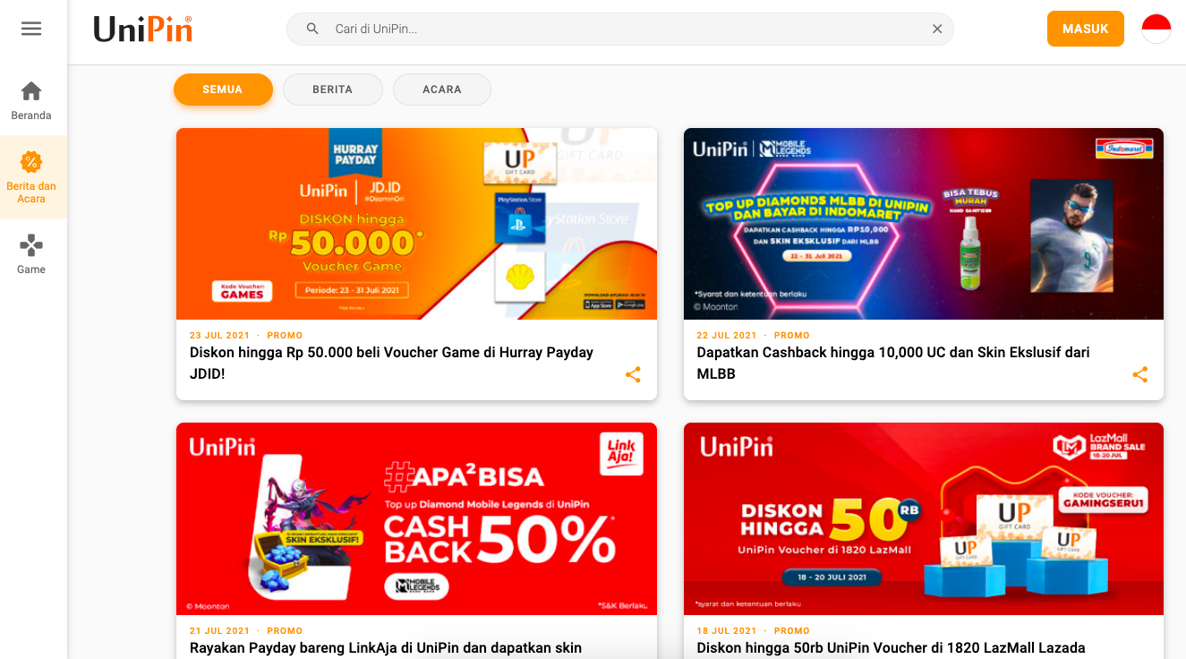Nantinya promo-promo terbaru yang ada di UniPin dapat kamu gunakan untuk top up dengan lebih hemat. Baik itu top up game, pembelian voucher, ataupun juga untuk top up diamond Mango Live. Jadi jangan lupa untuk cek dan pakai promo-promo terbaru dari UniPin ya.