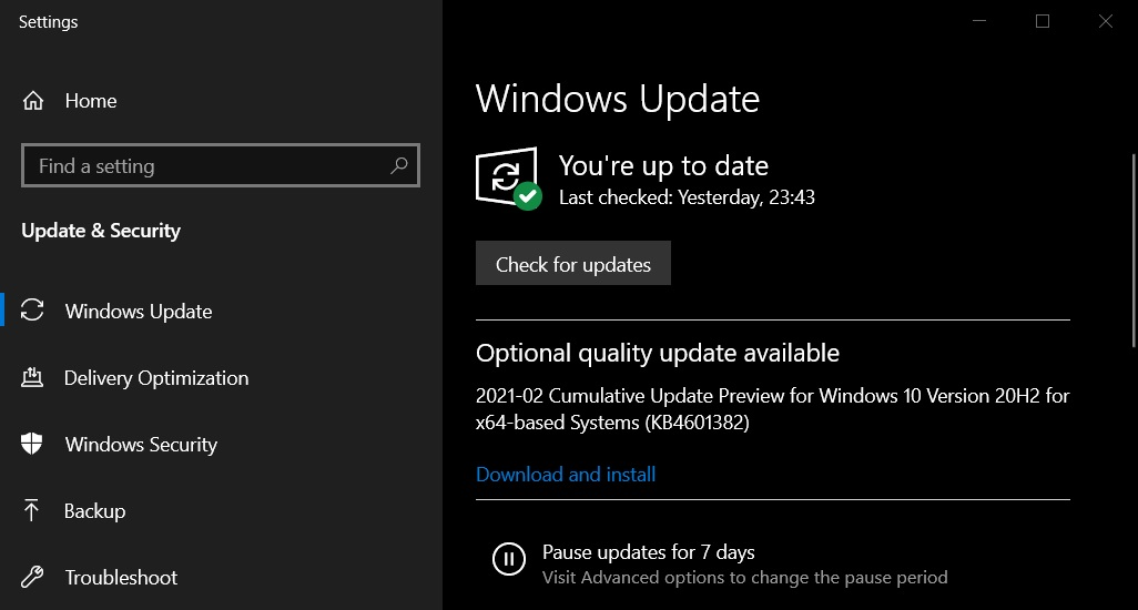 - Pilih pembaruan KB4601382, lalu unduh dan instal.