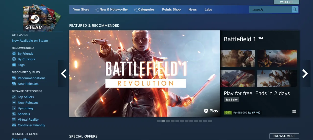 Mau beli game PC original? Tentu saja kamu bisa andalkan layanan di platform Steam. Platform Steam dapat kamu akses langsung di website: https://store.steampowered.com/. Melalui Steam, kamu bisa beli ataupun download berbagai game PC yang ingin kamu mainkan. Dengan koleksi yang sangat lengkap, Steam menjadi favorit para gamers untuk kebutuhan game PC mereka.