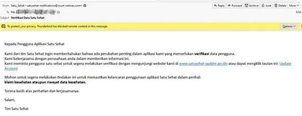 Waspada Phising! Penipuan Bermodus Email SATU SEHAT, Kemenkes