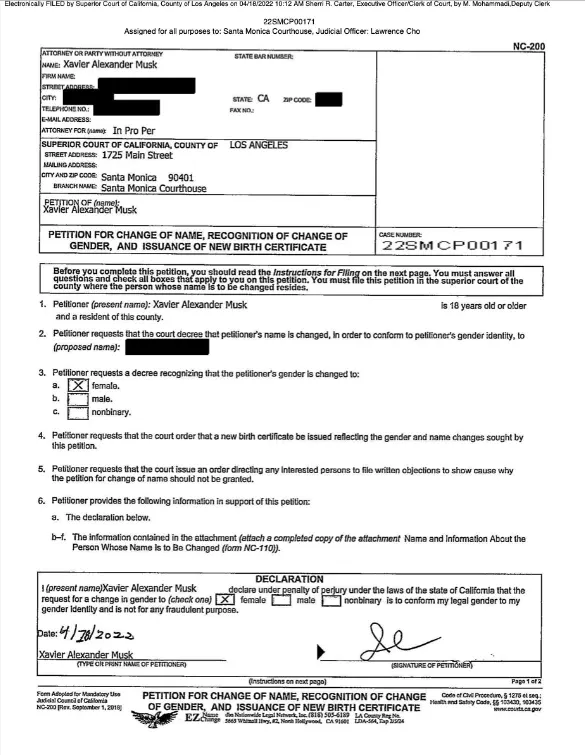 Berdasarkan dokumen yang diajukan, ia meminta pengadilan untuk mengabulkan permintaannya untuk mengubah gendernya dari laki-laki menjadi perempuan dan mendaftarkan nama barunya, tepat setelah sang anak menginjak usia 18 tahun pada April 2022 lalu.
