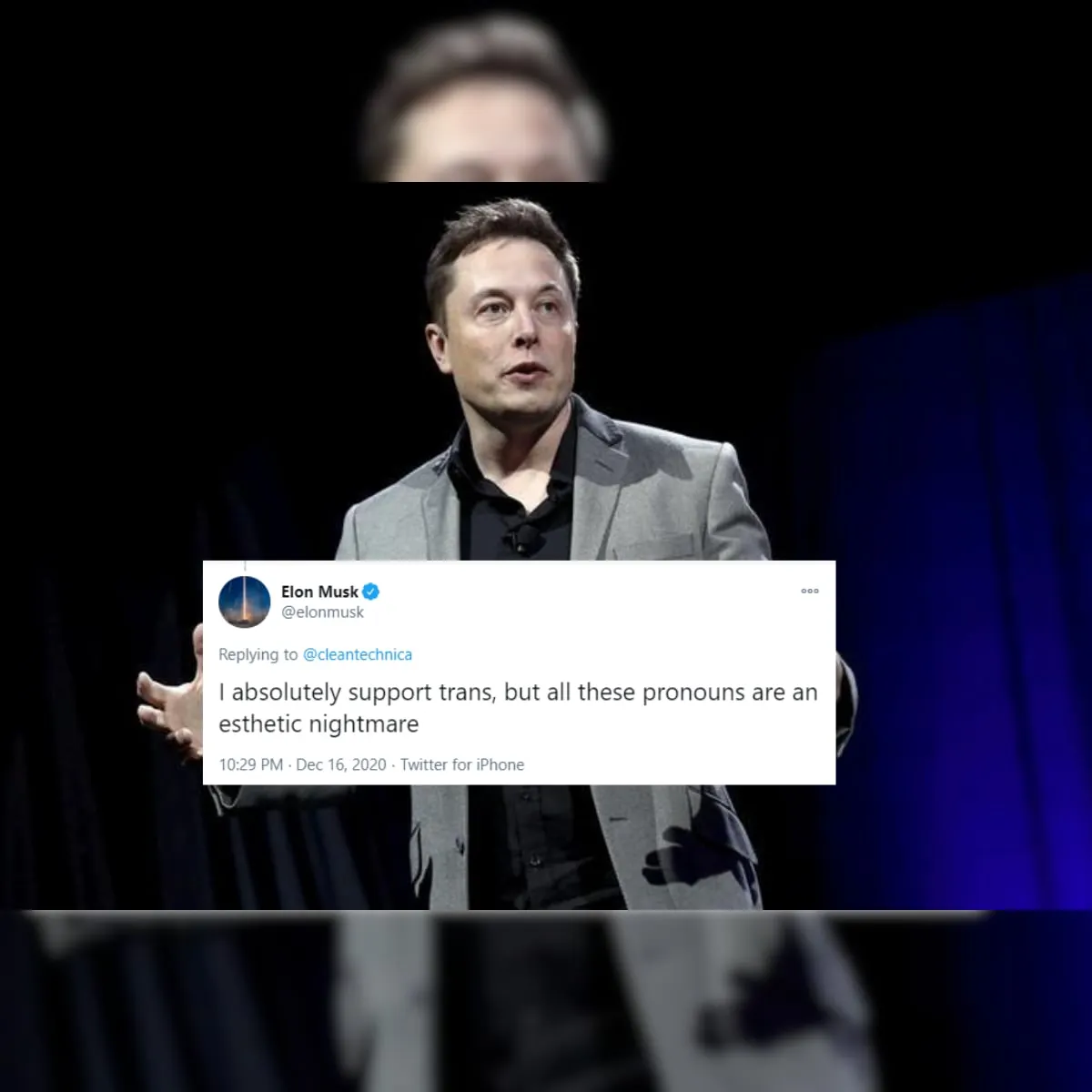 "Saya benar-benar mendukung trans, tetapi semua kata ganti ini adalah mimpi buruk estetika," kata Musk dalam cuitan yang diunggah pada Desember 2020.