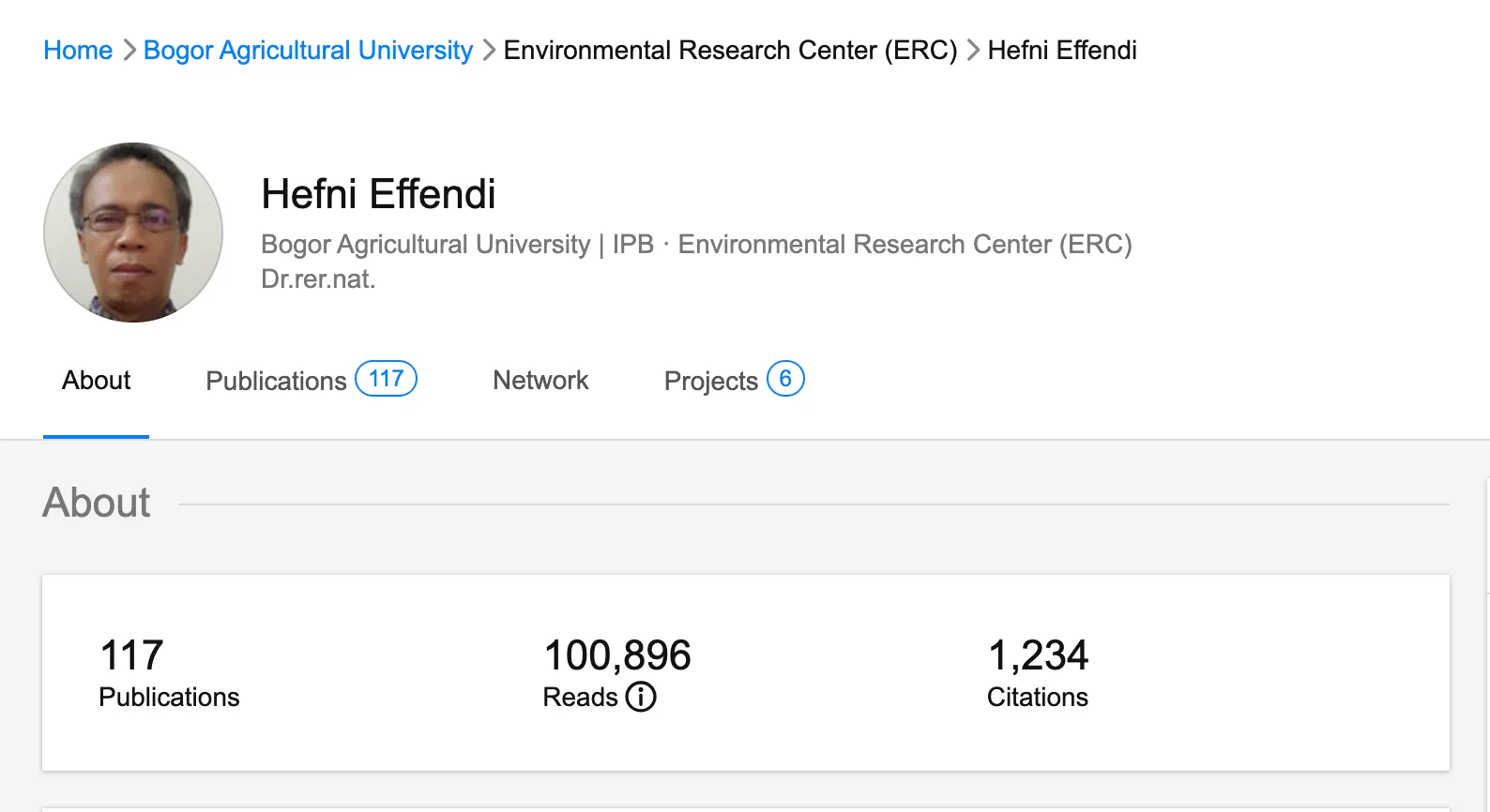 Pada akun Google Scholar milik Prof. Dr. Ir. Hefni Effendi, M. Phil. terdaftar 355 publikasi sejak tahun 1993 hingga saat ini (2023). Sedangkan pada Research Gate miliknya, Prof. Dr. Ir. Hefni Effendi, M. Phil. memiliki 117 publikasi dengan sitasi sebanyak 1.234.