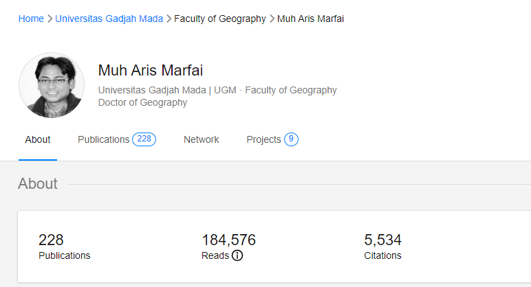 Teknologi.id - Ma Marfai menjadi dosen teknologi dari Universitas Gadjah Mada yang menempati peringkat 20 'Indonesia Top 10.000 Scientist' kategori Subjek Engineering & Technology. Pemeringkatan ini dilakukan oleh AD Scientific Index yang merupakan sistem pemeringkatan dan analisis tahunan berdasarkan kinerja ilmiah dan produktivitas dari sebuah universitas dan/atau seorang ilmuan.