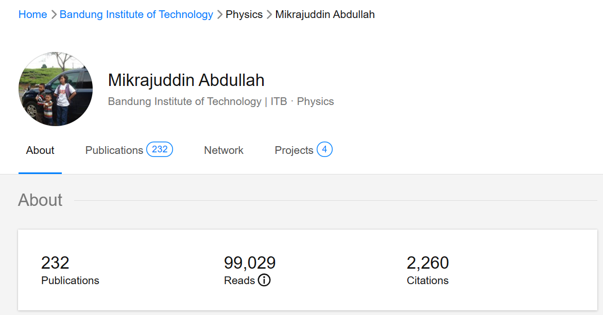 Teknologi.id - Mikrajuddin Abdullah menempati peringkat 17 'Indonesia Top 10.000 Scientist' kategori Subjek Engineering & Technology. Pemeringkatan ini dilakukan oleh AD Scientific Index yang merupakan sistem pemeringkatan dan analisis tahunan berdasarkan kinerja ilmiah dan produktivitas, seperti; parameter total, 5 tahun terakhir, dan rata-rata dari i10-index, h-index, dan citation score seorang ilmuan.