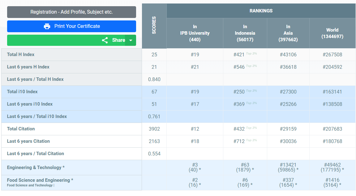 Teknologi.id - Slamet Budijanto menjadi Dosen di Institut Pertanian Bogor dan menempati peringkat 62 'Indonesia Top 10.000 Scientist' kategori Subjek Engineering & Technology. Pemeringkatan ini dilakukan oleh AD Scientific Index yang merupakan sistem pemeringkatan dan analisis tahunan berdasarkan kinerja ilmiah dan produktivitas dari sebuah universitas dan/atau seorang ilmuan.