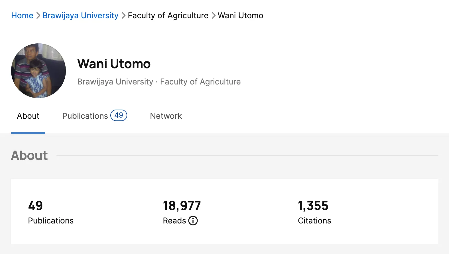 Pada akun Google Scholar milik Prof.Ir. Wani Hadi Utomo, Ph.D terdaftar 124 publikasi sejak tahun 1980 hingga 2022. Sedangkan pada Research Gate miliknya, Prof.Ir. Wani Hadi Utomo, Ph.D memiliki 49 publikasi dengan sitasi sebanyak 1.355.