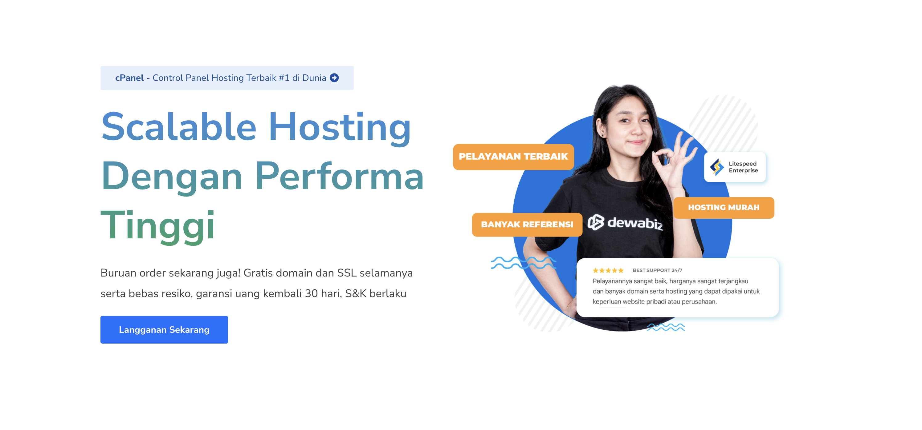 Terutama dalam penggunaan fitur dan kecepatan super hostingnya. Garansi ini menunjukkan bahwa Dewabiz benar-benar menjamin kualitas produk dan hosting yang diberikan.