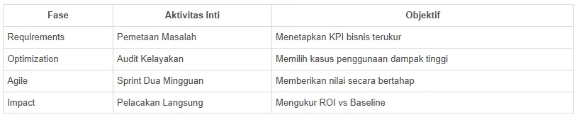 Kerangka kerja ini juga menekankan pada Fokus Optimalisasi dan Pengiriman Agile. Dengan berfokus pada proses dengan kelayakan dan dampak tertinggi, Sagara memastikan bahwa nilai diberikan secara bertahap melalui sprint dua mingguan. Pendekatan "Pengukuran Dampak" ini memungkinkan kami untuk melacak kinerja dunia nyata sejak hari pertama penerapan, menyesuaikan model AI sesuai kebutuhan untuk memastikan target ROI 5x tercapai dalam jendela waktu enam bulan yang dijanjikan.