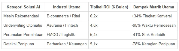 Rincian ROI Berdasarkan Implementasi AI Industri