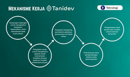 Mengatasi masalah tersebut, Tanidev hadir untuk membantu dan mengoptimalisasikan pengolahan pertanian menggunakan perangkat yang akan terus mencatat kondisi tanah dan iklim. Sistem Tanidev akan mempelajari data, mengolahnya, dan memberikan rekomendasi teknik cara bertani yang tepat agar petani dapat menerapkannya di lahan mereka. Semua panduan holistik mulai dari penanaman hingga panen yang dibutuhkan petani akan tersedia pada Tanidev.
