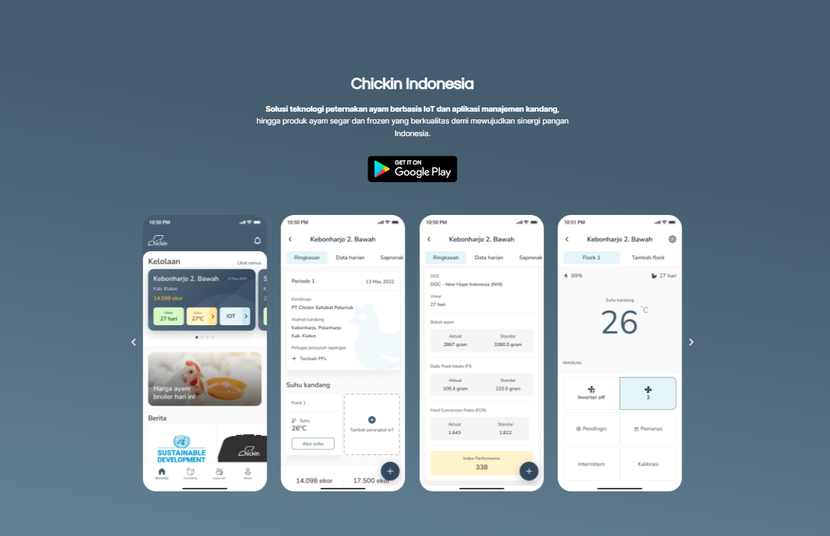 Teknologi.id - Chickin Indonesia merupakan perusahaan startup yang bergerak di bidang teknologi peternakan dan distribusi daging. Chickin merupakan bagian dari PT Sinergi Ketahanan Pangan yang menawarkan teknologi berbasis cloud yang memungkinkan peternak melakukan manajemen budidaya dengan dashboard monitoring.