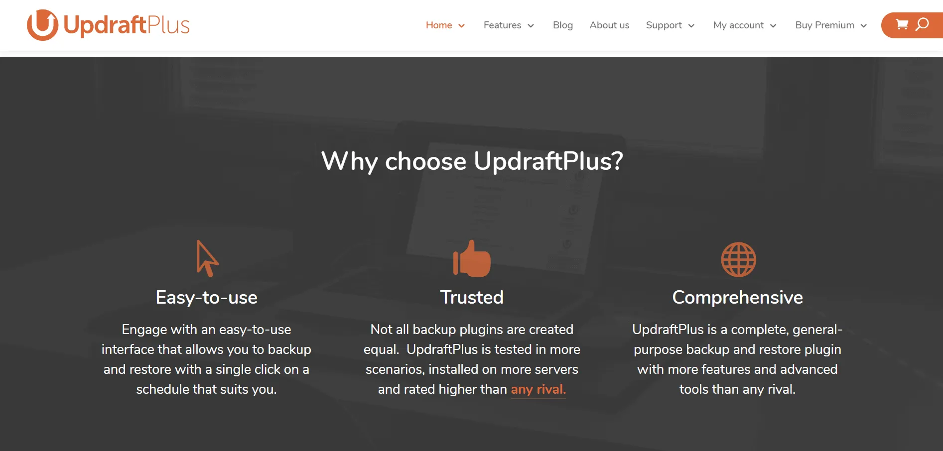 UpdraftPlus menjadi plugin backup terpopuler dan terbaik yang harus Anda install. Plugin ini sudah diunduh lebih dari 3 juta kali. Plugin ini menyediakan jasa backup terjadwal dan akan dikirimkan ke cloud. Opsi penyimpanannya pun sangat banyak, seperti Google Drive, Dropbox, Email dan masih banyak opsi lainnya. Cara penggunaannya juga sangat mudah, kita hanya memerlukan sekali klik dan semua data akan terbackup dengan sendirinya.