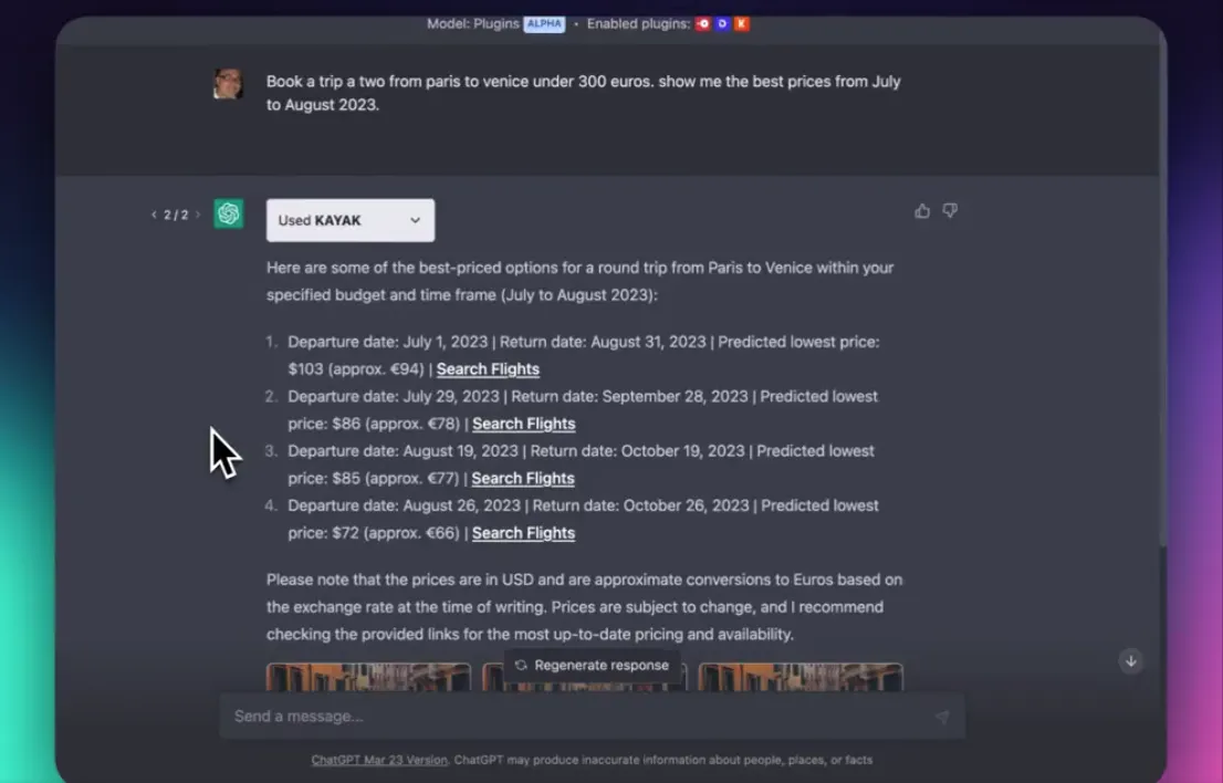 Kamu tidak akan pernah mengalami kerumitan merencanakan liburan lagi. Plugin Kayak untuk ChatGPT menangani reservasi perjalanan, menjadikannya alat yang sempurna untuk sering bepergian dan individu yang sibuk. Cukup masukkan tujuan yang kamu inginkan, dan plugin Kayak di ChatGPT akan menangani sisanya.
