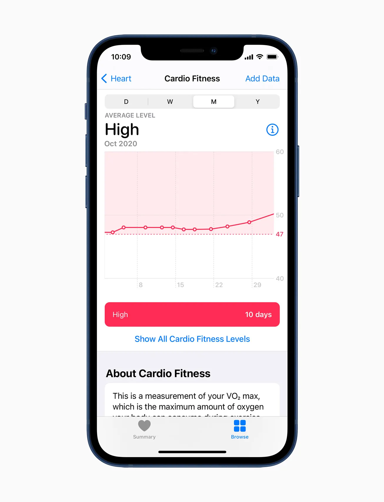 Apple menyampaikan informasi dari American Heart Association, yang mengatakan bahwa ada hubungan antara kebugaran kardio yang rendah dan risiko masalah kesehatan yang lebih tinggi seperti penyakit jantung dan tekanan darah tinggi.