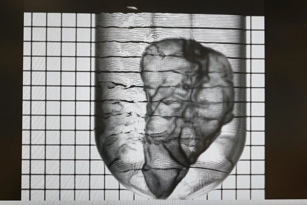 Bentuk transparan dari replika elektronik berukuran kecil pankreas manusia akan terlihat di layar komputer sebelum dicetak. Bentuk tersebut akan dicetak menggunakan gel biologis hanya dalam waktu 30 detik pada bioprinter yang semuanya diambil dari sampel sel induk manusia.
