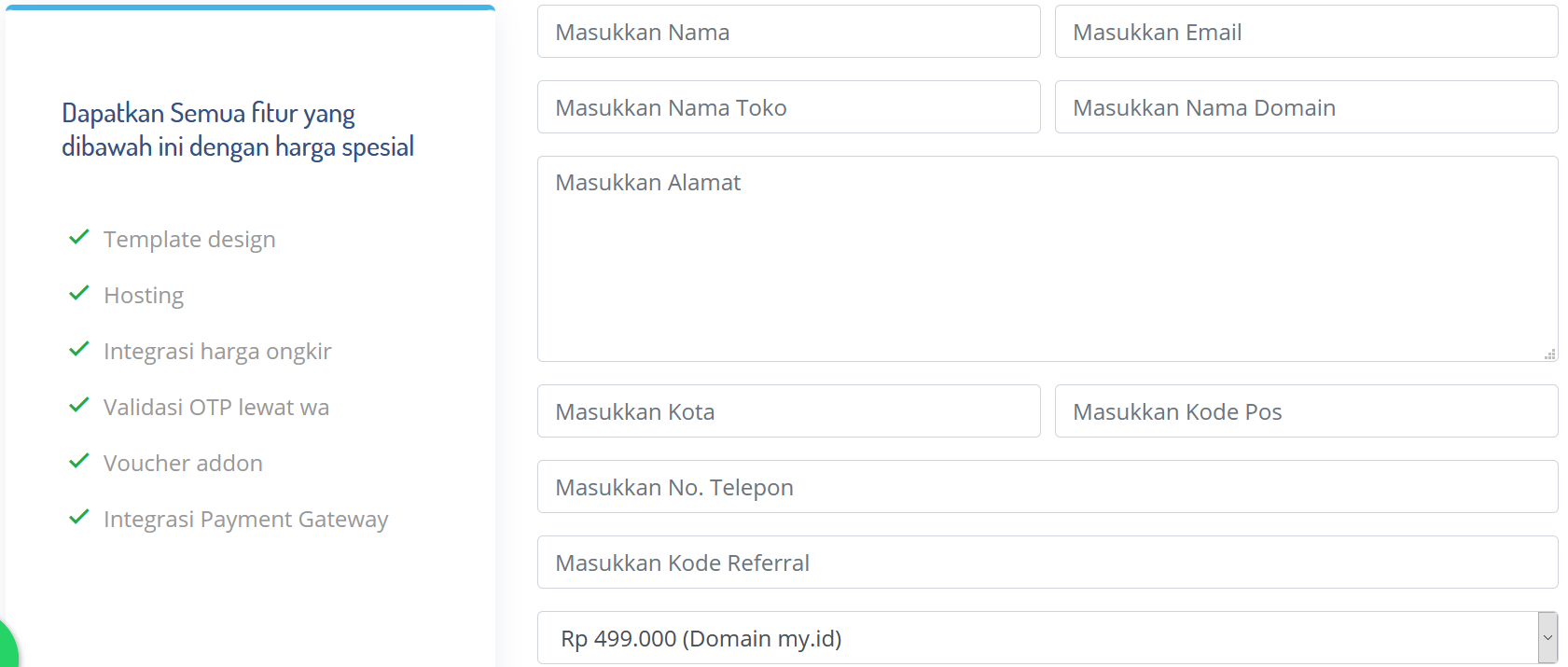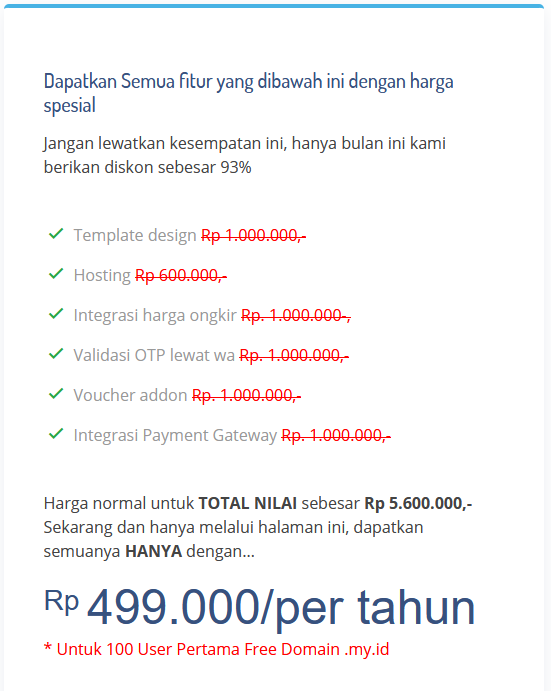 4. Pilih harga :Rp 499.000 (Domain my.id)Rp 799.000 (Domain .com / id)