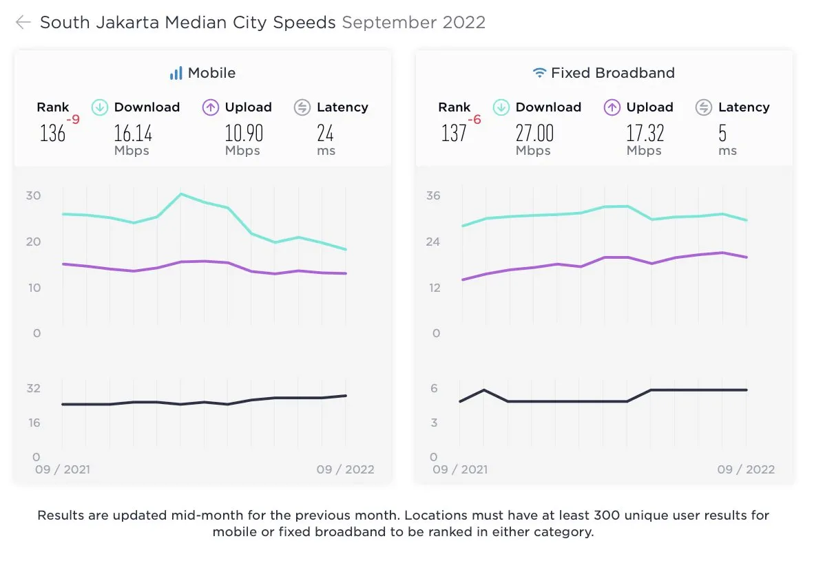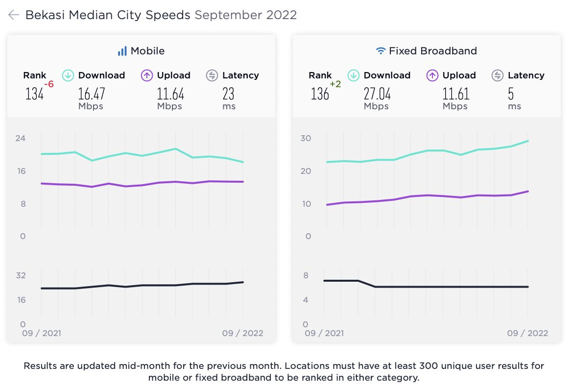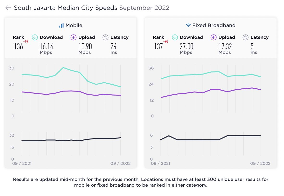 Indonesia sendiri punya dua perwakilan, Bekasi dan Jakarta Selatan. Faktanya, Bekasi lebih unggul dari Jakarta Selatan soal kecepatan internet mobile dan fixed broadband.