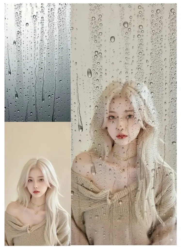 Misalnya, foto gelas di malam hari digabung dengan potret seseorang — hasilnya tampak seperti karya seni sinematik yang dramatis.