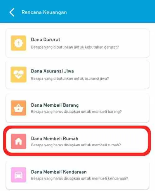 Kemudian dia coba-coba hitung keperluan dia buat beli rumah pakai fitur ‘Rencana Keuangan’. Dari situ lah, dia kemudian tahu berapa banyak uang yang harus dikumpulkan per bulannya, sampai berapa banyak uang yang harus diinvestasikan per bulan.