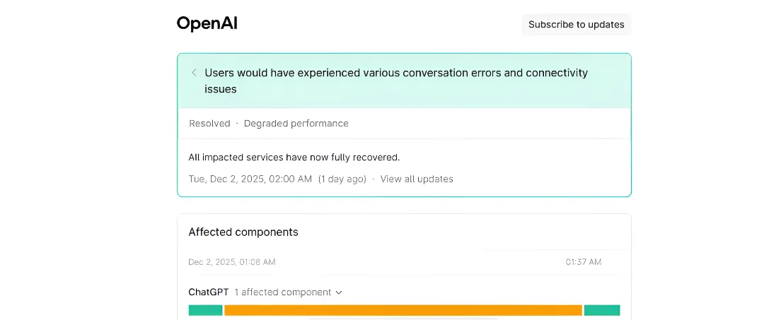 ChatGPT yang terjadi pada Rabu pagi waktu setempat, 3 Desember 2025, mulai sekitar