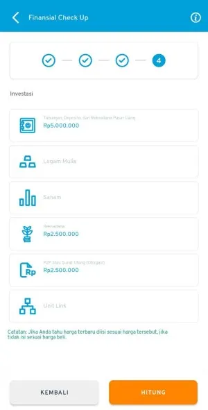 Gue ngeceknya pake Aplikasi Finansialku, karena sejauh ini, menurut gue, cuma aplikasi Finansialku yang punya fitur Financial Check Up.