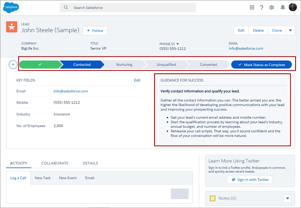 Sistem CRM umumnya telah dilengkapi dengan contact management dengan dilengkapi user interface yang mudah untuk dipahami oleh sales rep. Pada akhirnya apabila tim sales telah menginput data aktivitas sales, sales manager pun dapat memantau kinerja tim.