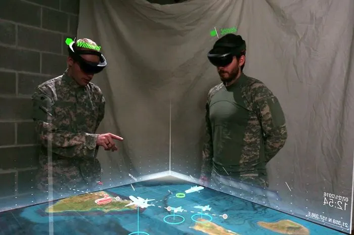 HoloLens merupakan lensa yang menggunakan teknologi Augmented Reality (AR). Akhir tahun 2018, militer AS menandatangani kontrak senilai US$ 479 juta atau sekitar Rp6,7 triliun dengan (Microsoft) HoloLens untuk pengembangan teknologi AR pada headset yang akan dipakai oleh pasukan tempur darat (infanteri).