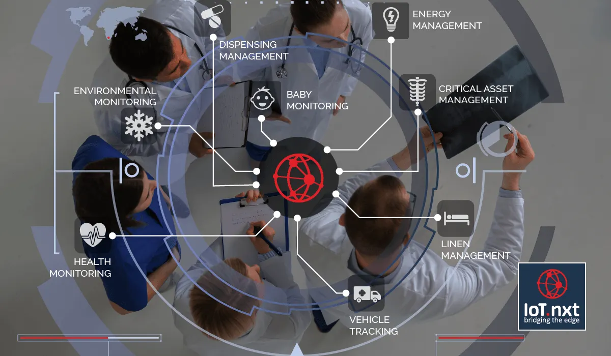 Rumah sakit menggunakan teknologi IoT untuk melacak aktivitas pasien. Misalnya, sistem rumah sakit dapat digunakan untuk mengidentifikasi lokasi ambulans waktu nyata dan menyiapkan ruang gawat darurat dan jalur untuk pasien begitu ia tiba di fasilitas. Rumah sakit juga menggunakan teknologi ini untuk menemukan lokasi beberapa peralatan mereka seperti kursi roda dan pompa infus.