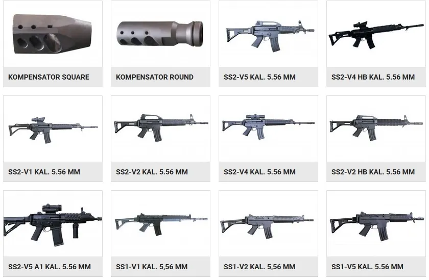 Senapan serbu SS-2 menjadi satu produk buatan Pindad yang laris manis di pasar internasional. Terdapat delapan varian dari senjata laras panjang seri SS-2 ini, di antaranya SS2-V7 subsonic, SS2-V5, SS2-V4-HB, SS2-V2, SS2-V1, SS2-V4, SS2-V5, SS2-V1 HB, dan SS2-V2 HB.