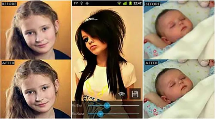 Sesuai dengan namanya, aplikasi ini juga dapat memperjelas foto yang buram atau blur. Aplikasi ini berbeda dengan Photoshop Express yang jauh lebih lengkap. Aplikasi ini hanya dapat memperjelas foto yang buram atau blur.