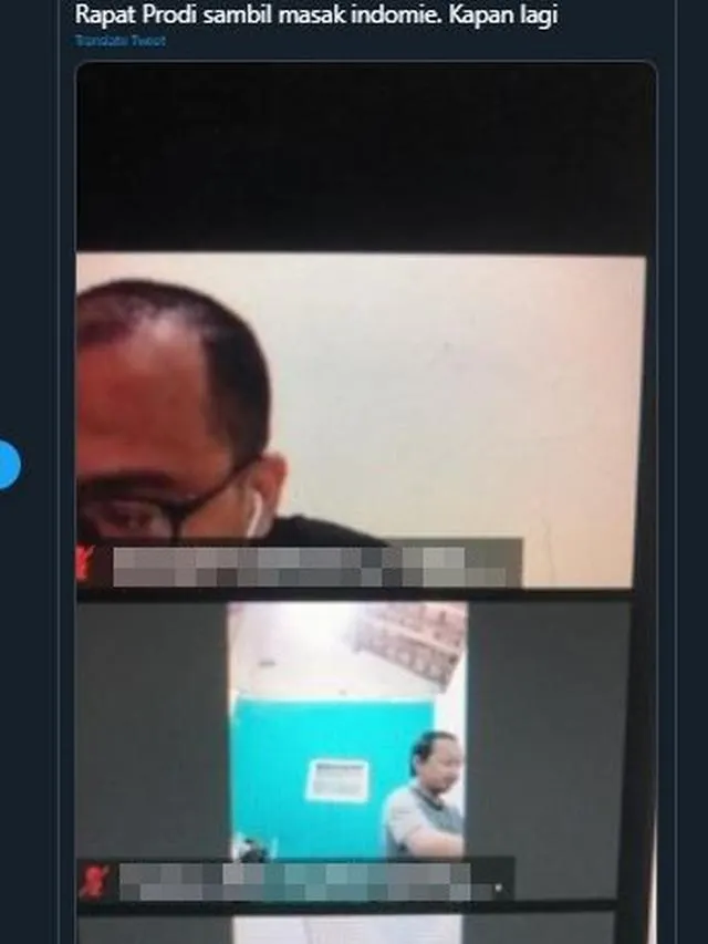 3. Bapak-bapak ini meeting online sambil masak mie instan. Laper pak?