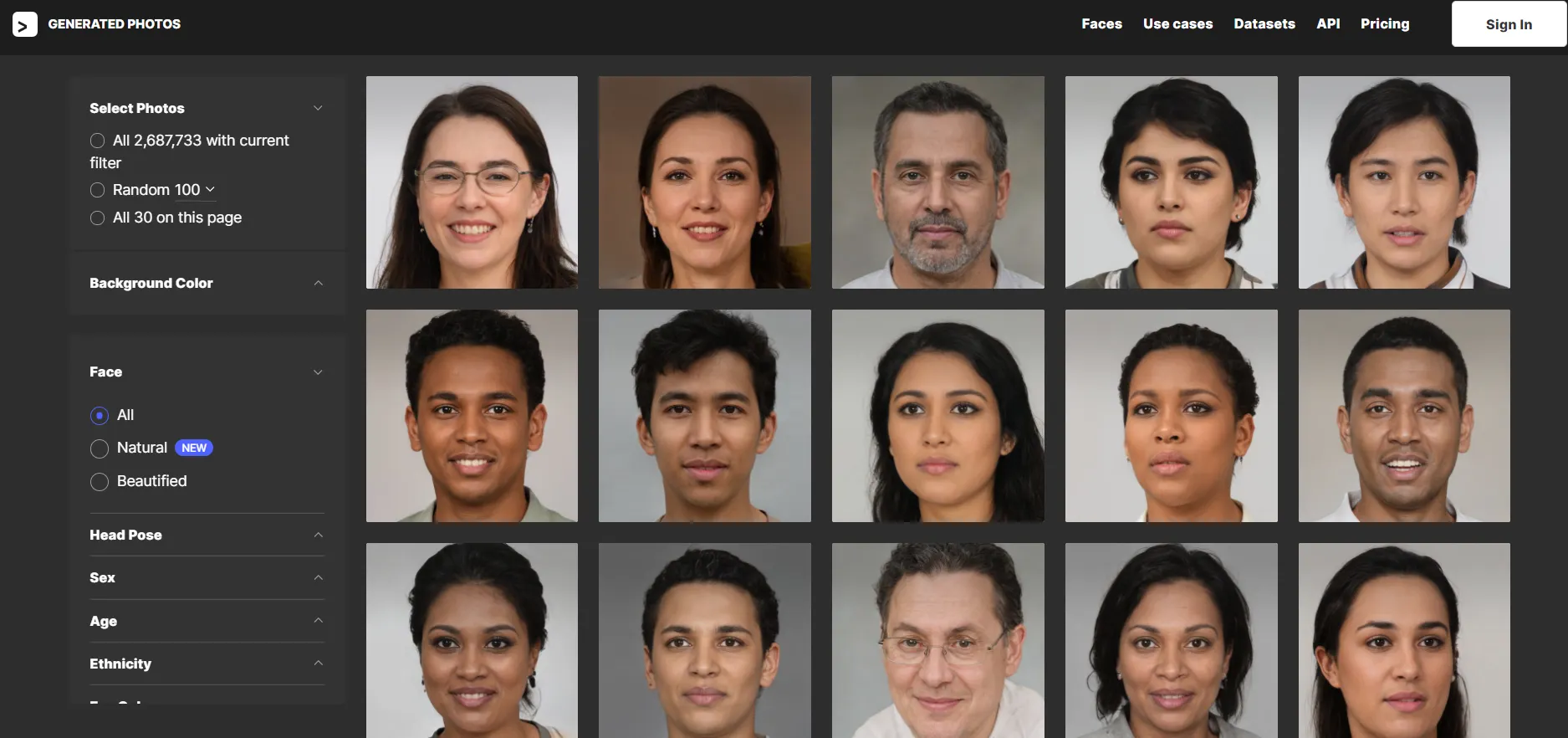 Pada situs Generated Photos, kamu bisa 'membeli' orang palsu yang unik tanpa perlu repot meminta izin untuk menggunakan foto orang lain untuk kebutuhan, misal karakter video game, atau membuat situs web perusahaan seharga USD 2,99 per foto atau USD 1.000 untuk 1.000 foto.