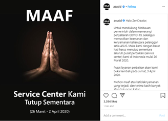 Selain itu, Asus juga memberikan pengumuman penutupan ini kepada para pengguna melalui akun Instagram resminya @asusid