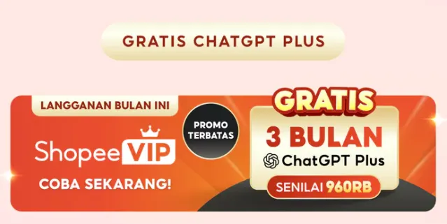 Meskipun harga paket ChatGPT terbilang cukup mahal, tetapi ada cara lain untuk mendapatkan harga yang lebih murah, yaitu dengan menggunakan ShopeeVIP.