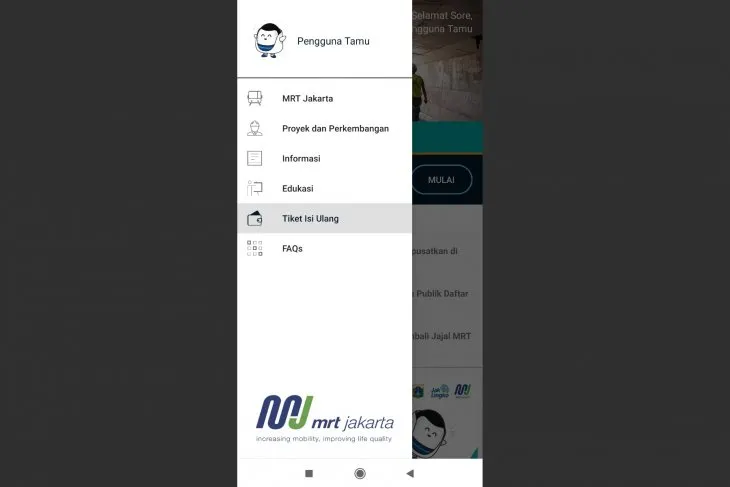 Setelah mengunduh aplikasi MRT-J, pengguna akan dipilih untuk mengakses sebagai tamu atau log in, pilihannya menyambungkan aplikasi ini dengan akun Google, Facebook dan Twitter.