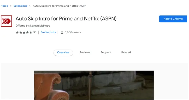 Pengguna hanya tinggal menuju Google Chrome Web Store, cari "Auto Skip Intro" dan klik tombol biru yang bertuliskan “Add to Chrome”, dan mengunduhnya ke komputer.