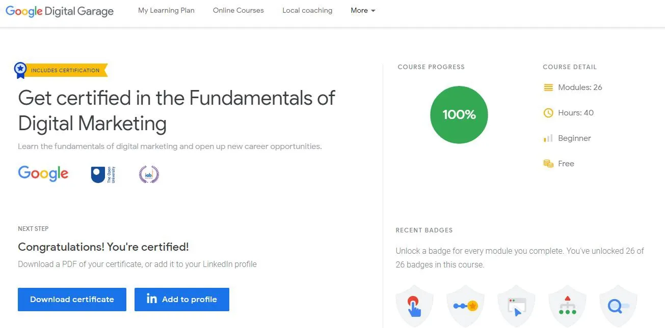 Program pelatihan kursus online Google Digital Garage milik Google menawarkan ratusan materi kursus online gratis dari beberapa pilihan tema yang bisa diambil.