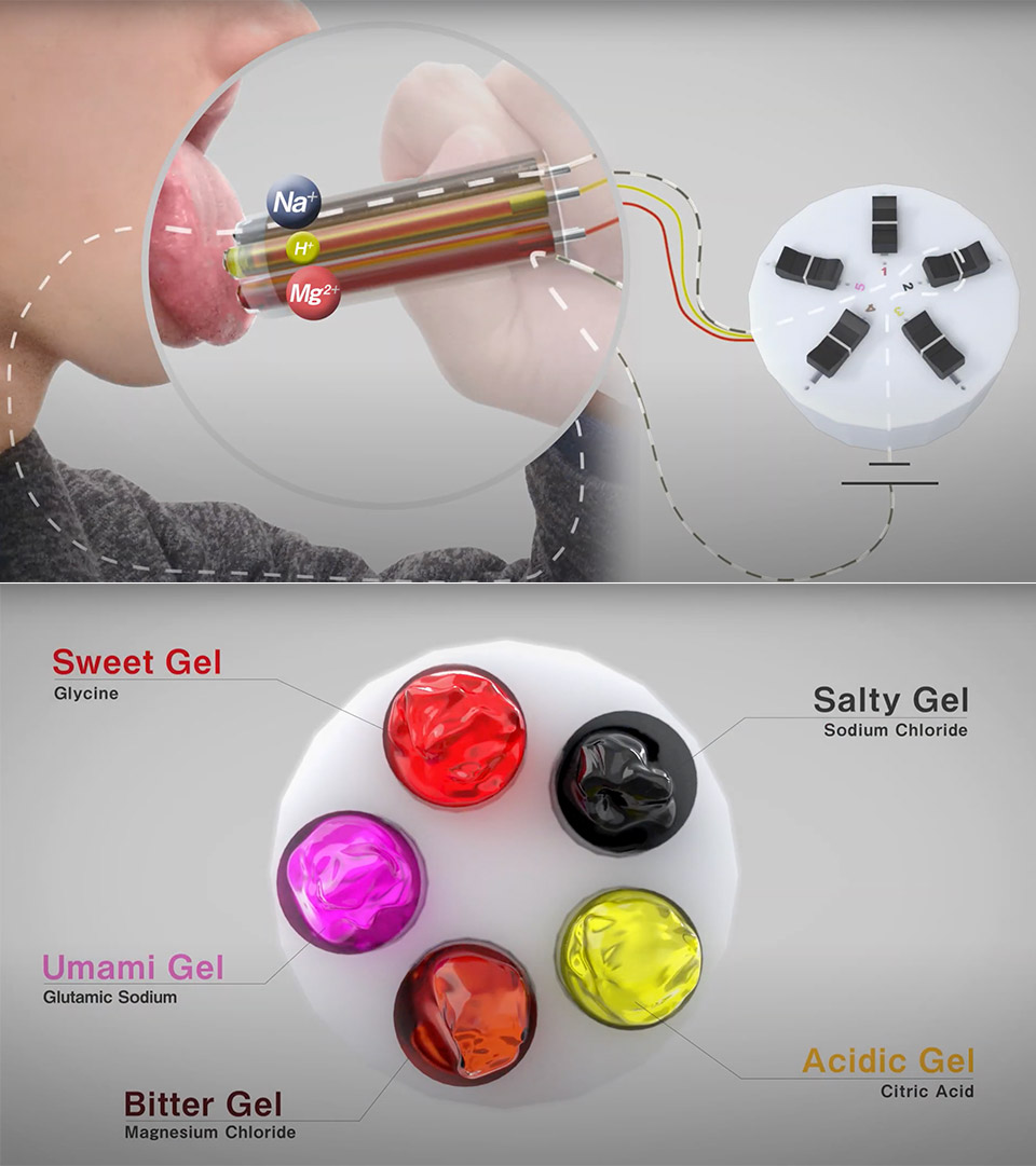 Melalui proses elektroforesis, rasa virtual tersebut nantinya muncul, dan ketika lima tabung perangkat bersentuhan dengan lidah, orang tersebut akan secara subyektif merasakan kelima sensasi rasa yang dihasilkan.